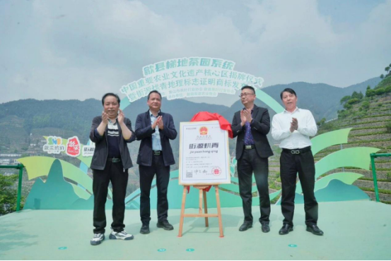 随后,“歙县梯地茶园系统——中国重要农业文化遗产核心区”正式揭牌。