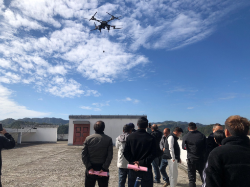 其次,深圳市大疆创新科技有限公司区域销售经理给学员讲解大疆植保无人机的性能、用途及安全操作,并现场演示无人机的操作过程。