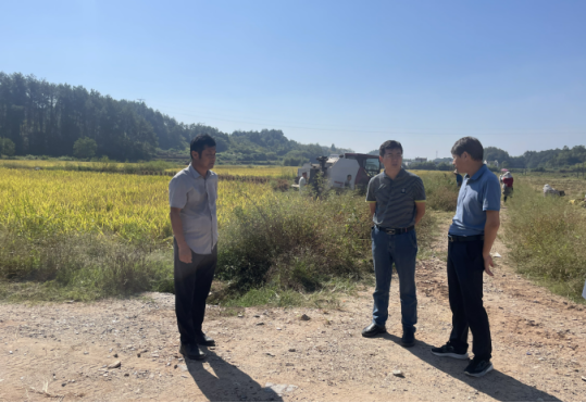 10月11日,省农业农村厅特色产业处副处长伊兴凯来黄开展秋收秋种包保服务,市农业农村局种植业科副科长陈昭琪、市农业技术推广中心副主任王淑芬陪同。